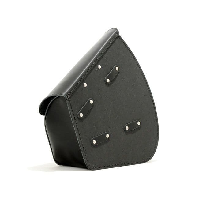 Mounts to left side of the Softail swingarm. Complete with leather straps on the rear side for easy installation onto the swingarm tubes.
